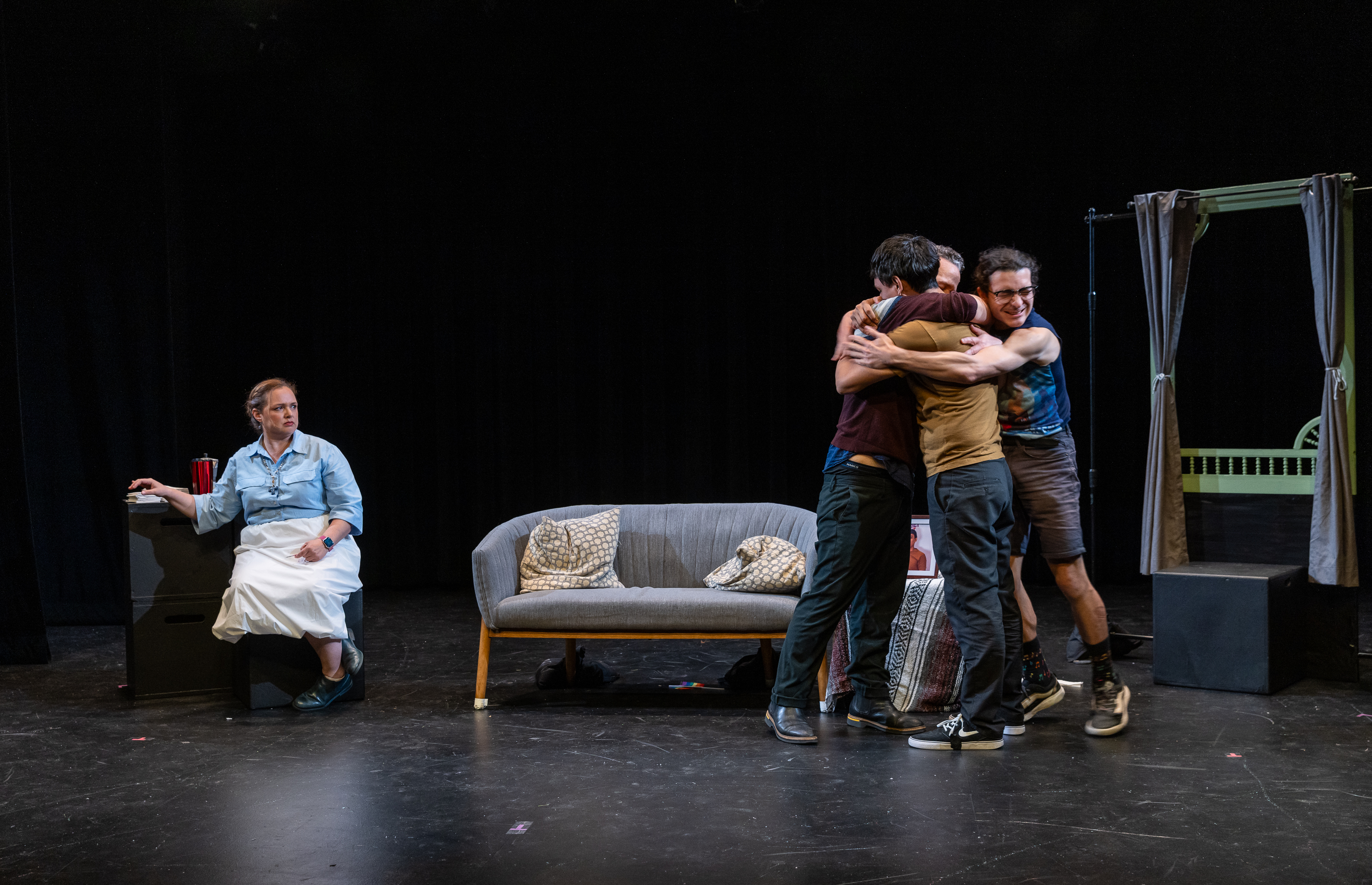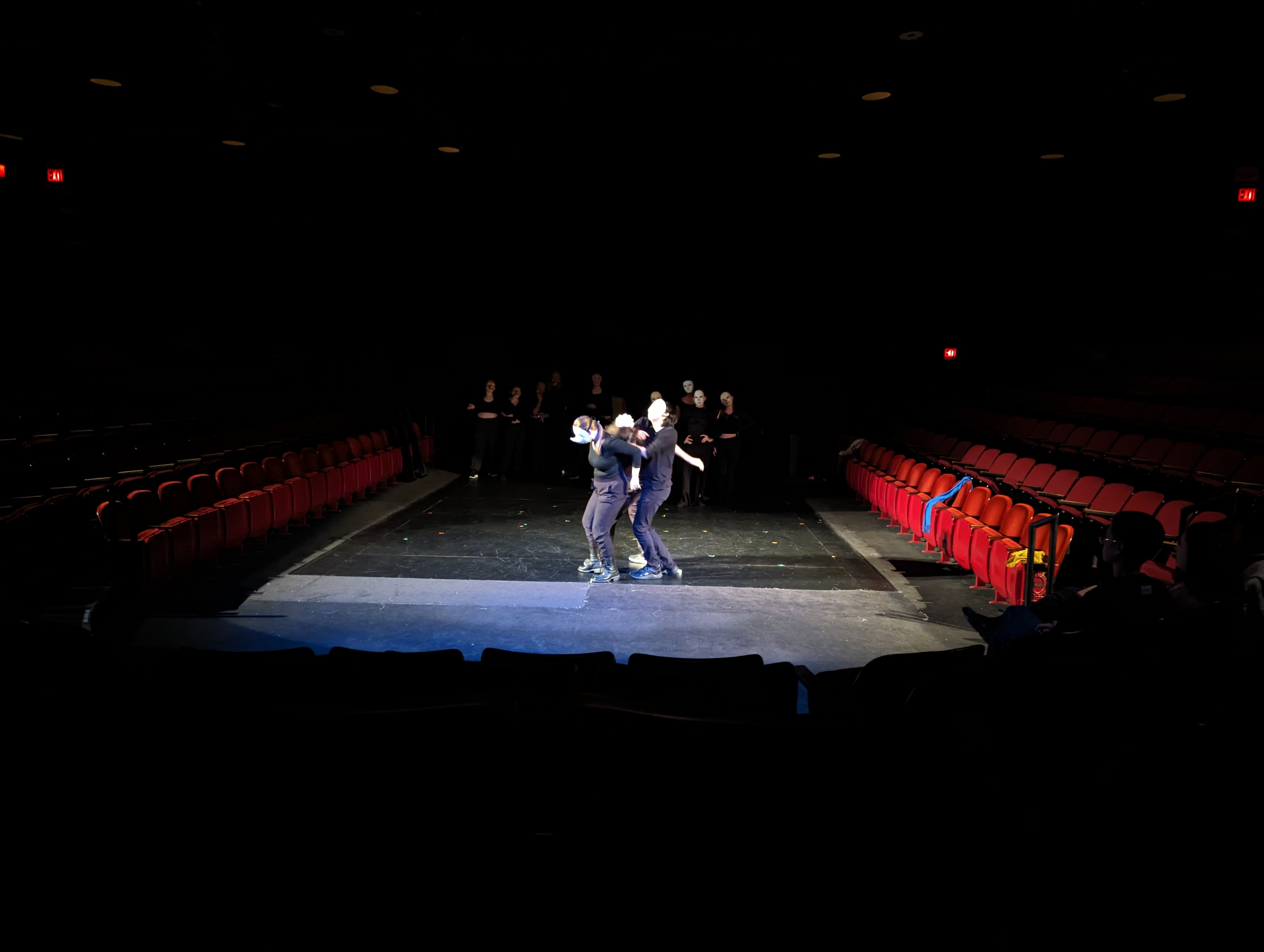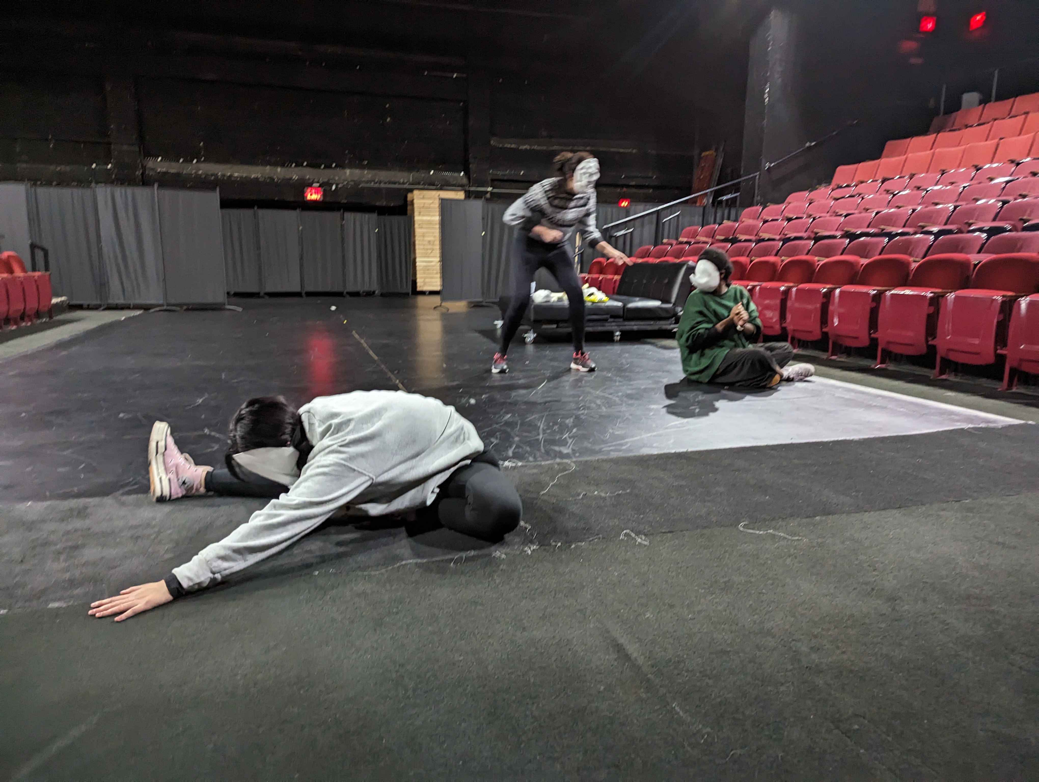 For the past three years, Chris has directed devised works at the Circle in the Square Theatre as part of their conservatory program’s “Winter Showcase.” The shows take place at Circle’s Broadway Stage. The following pictures show some in-rehearsal pictures from the process.