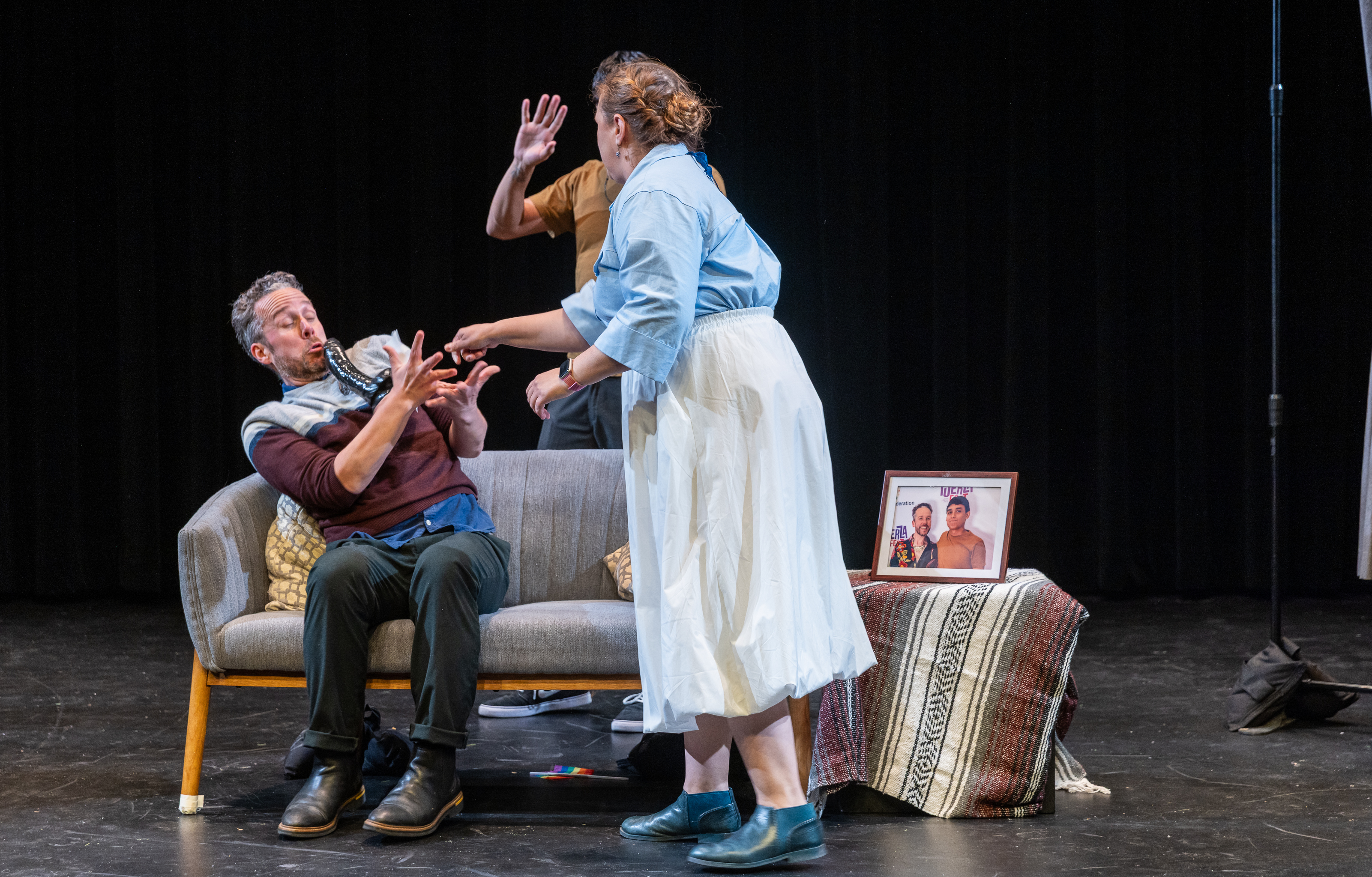 The play #daddy, written and directed by Chris, was presented as part of The Hispanic Federation’s Queer Arts Festival in its 2025 edition. The play takes place in a New York City apartment, a gay father and his Queer son navigate the ups and downs of living under the same roof. For an LGBTQ+ kid raised in a conservative world, having a Queer parent feels like a dream come true… until cultural and generational tensions spark unexpected friction. With a diverse, colorful cast and sharp comedy, #daddy is a vibrant, heart-driven journey through love, identity, and the complexities of family. Pictures by Krystal Pagán.